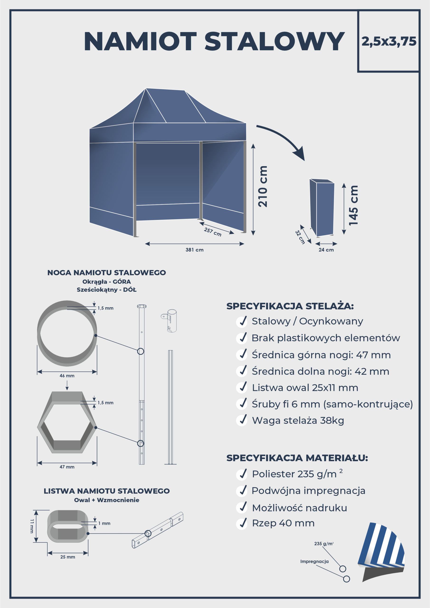 – Tkanina poliestrowa 235 g/m², 300 cm słupa wody