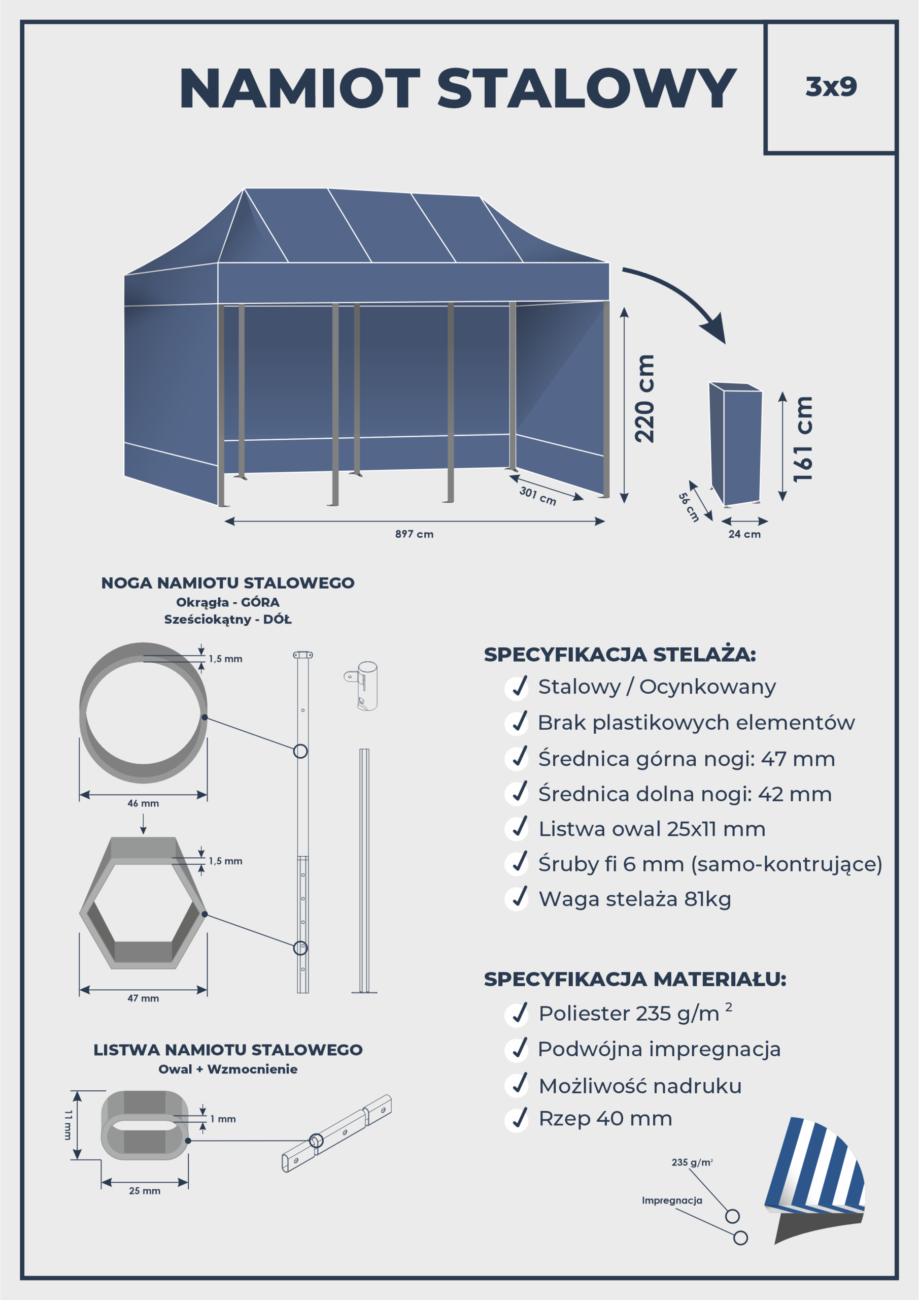 – Tkanina poliestrowa 235 g/m², 300 cm słupa wody