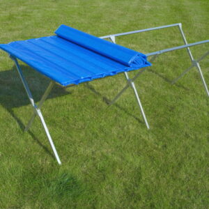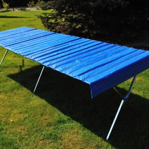 Mocny stół, nie tak wytrzymały jak ten ramkowy – ale łatwo się składa – polecam!